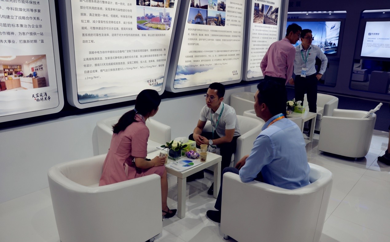 國(guó)能中電作為節(jié)能環(huán)保行業(yè)的領(lǐng)軍企業(yè),多年來(lái)致力于工業(yè)煙氣治理、超凈火力發(fā)電、生物質(zhì)能源利用、綠色金融服務(wù)和環(huán)保新材料研發(fā)等領(lǐng)域。在此次展會(huì)中,國(guó)能中電集中、全面、生動(dòng)地展示了公司煙氣污染物協(xié)同脫除系統(tǒng)(SRS)—環(huán)保島、炭基催化劑干法煙氣多污染物一體化脫除技術(shù)、余熱閃蒸自結(jié)晶“3C-MED”脫硫廢水零排放技術(shù)、激光熔覆技術(shù)、環(huán)保浸金劑技術(shù)等多項(xiàng)優(yōu)勢(shì)核心技術(shù),以及環(huán)保裝置第三方運(yùn)維、環(huán)保核心設(shè)備生產(chǎn)等專(zhuān)業(yè)服務(wù)。